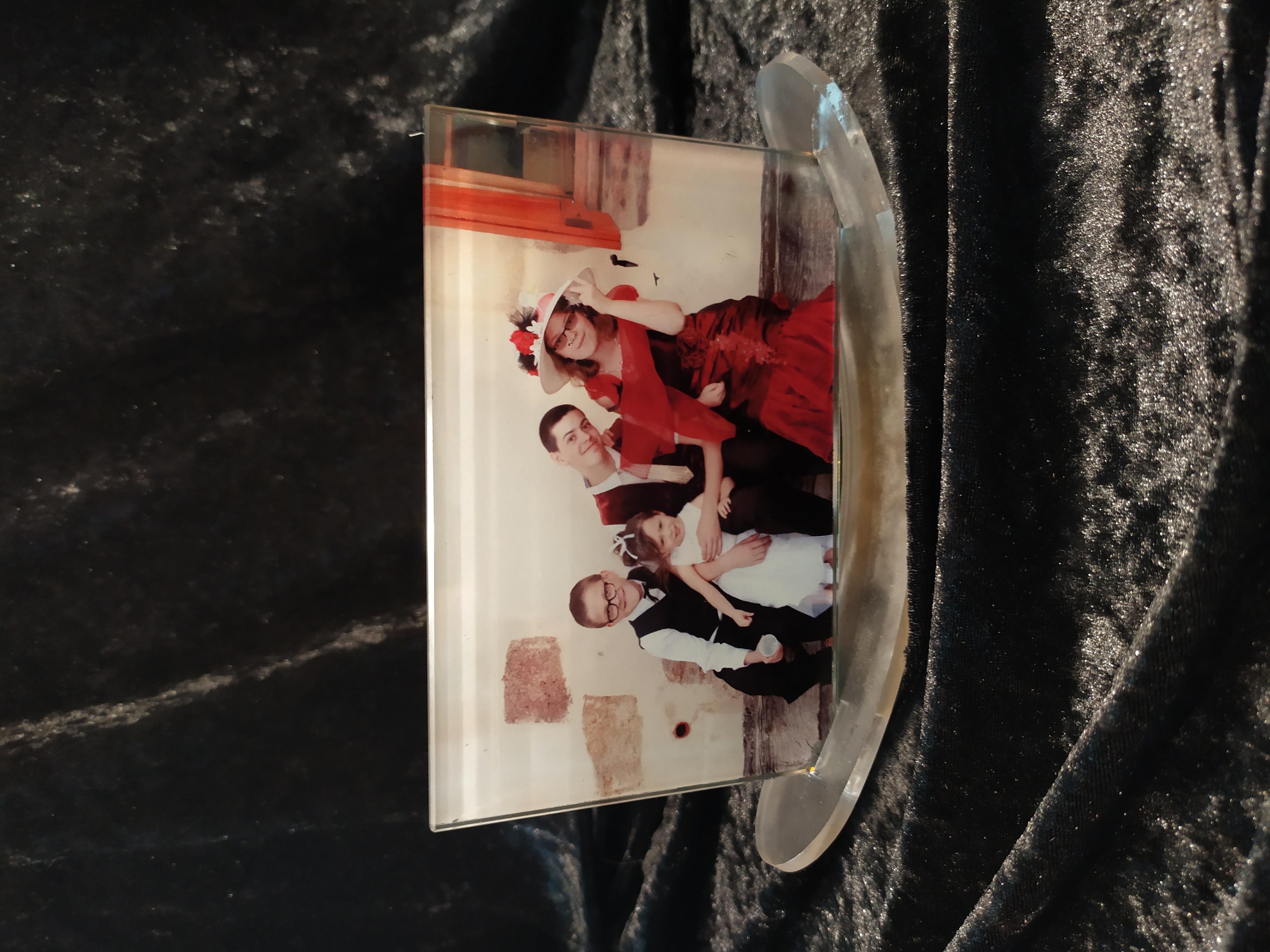 Cadre en verre avec support en plastique transparent, totalement personnalisable.